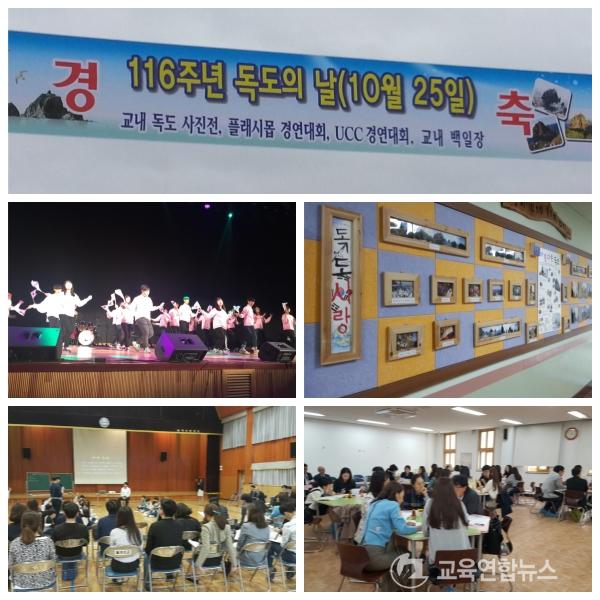 ¿ì»êÁßÇб³(±³Àå °ûÇà¼÷)°¡ 25ÀÏ µ¶µµÀÇ ³¯À» ¸Â¾Æ 10¿ù24ÀϺÎÅÍ 30ÀϱîÁö µ¶µµÁÖ°£À» ¼³Á¤Çϰí Àü±³»ý 430¸íÀÌ Âü¿©ÇÏ´Â ´Ù¾çÇÑ Çà»ç¸¦ ½Ç½ÃÇÑ´Ù.
