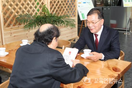 Ư°¿¡ ¾Õ¼ Á¶Á¤·¡ ÀÛ°¡¸¦ ¸¸³ À常ä ±³À°°¨Àº ÃÖ±Ù ÀÚ½ÅÀÇ Àú¼ ¡º°øºÎ´Â ¿Ö Çϴ°¡?¡»¸¦ ¼±¹°Çϰí, ¿ì¸® ¹ÎÁ·ÀÇ ¹ßÀüÀ» À§ÇØ Áö±ÝÀÇ ±³À°Àº º¯ÇØ¾ß Çϸç, »ç¶÷À» »ç¶÷´ä°Ô Ű¿ì´Â Àμº±³À°ÀÌ ¿ì¼±µÇ¾î¾ß ÇÔÀ» °Á¶ÇϰíÀÚ ÇÏ´Â ¶æÀ» ÀüÇß´Ù.