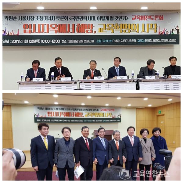 ¹Ú¿ø¼ø ¼­¿ï½ÃÀåÀÇ ±âÁ¶ ¹ß¾ðÀ» ½ÃÀÛÀ¸·Î, °æ±âµµ ÀÌÀçÁ¤ ±³À°°¨ÀÌ ÁÂÀåÀ» ¸Ã°í, À常ä Àü³²±³À°°¨À» ºñ·Ô, ¼­¿ï½Ã ±³À°°¨ Á¶Èñ¿¬, °­¿øµµ ±³À°°¨ ¹Îº´Èñ, ±³À°Çõ¸í°øµ¿Çൿ ±èÇÐÇÑ ´ëÇ¥°¡ ÁöÁ¤Åä·ÐÀÚ·Î ¿­¶í Åä·Ð¿¡ ³ª¼¹´Ù.