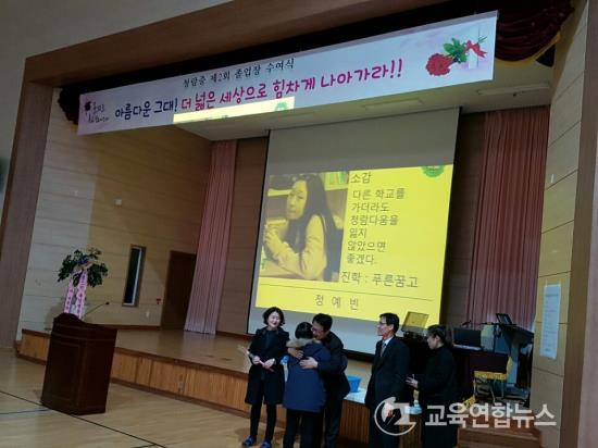 À̳¯ ½Ç½ÃµÈ Á¦2ȸ Á¹¾÷½ÄÀº û¶÷ÁßÇб³ ¼¼¿ùÈ£ Âü»ç¸¦ »ý°¢ÇÏ´Â ³ë¶õ¿ì»ê ÇÁ·ÎÁ§Æ®¸¦ ½ÃÀÛÀ¸·Î Á¹¾÷»ý ±³À°È°µ¿ ¿µ»ó »ó¿µÀÌ ½ÄÀüÇà»ç·Î ÁøÇàµÆ´Ù.