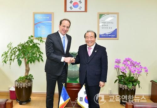 ¡¼±¤ÁÖ=±³À°¿¬ÇÕ´º½º¡½¾çº´¼ö±âÀÚ= ÀåÈÖ±¹ ±¤Áֽñ³À°°¨ÀÌ 8ÀÏ ±¤Áֽñ³À°Ã»¿¡¼ ÆÄºñ¿¨ Æä³í ÁÖÇÑ ÇÁ¶û½º ´ë»ç¿Í ¸é´ãÀ» ÁøÇàÇÏ°í ¾ç±¹ °£ÀÇ ±³À° Çù·ÂÀ» ´ÙÁüÇß´Ù.