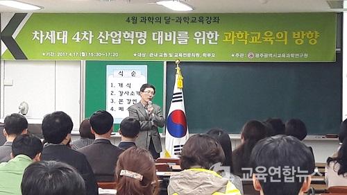 ¡¼±¤ÁÖ=±³À°¿¬ÇÕ´º½º¡½¹Ú»ó¿õ ±âÀÚ= ±¤ÁÖ±¤¿ª½Ã±³À°°úÇבּ¸¿ø(¿øÀå ±è¿ë¹è)ÀÌ 4¿ù °úÇÐÀÇ ´Þ ´ëÇ¥ Çà»ç ¡®°úÇб³À° °­Á¡¯¸¦ 17ÀÏ ±³À°°úÇבּ¸¿ø 303È£¿¡¼­ ½Ç½ÃÇß´Ù.