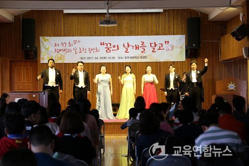 ¡¼±¤ÁÖ=±³À°¿¬ÇÕ´º½º¡½¹Ú»ó¿õ ±âÀÚ= Ư¼öÇб³ÀÎ ±¤ÁÖ¼¼±¤Çб³(±³Àå ±èÀºÈñ)´Â 20ÀÏ Á¦37ȸ Àå¾ÖÀÎÀÇ ³¯À» ¸Â¾Æ ½Ã°¢Àå¾ÖÇлýµé¿¡°Ô Ưº°ÇÑ ÇÏ·ç°¡ µÇ¾ú´Ù.