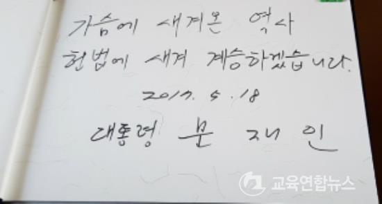 ¹®ÀçÀÎ ´ëÅë·ÉÀº ±â³ä»ç¸¦ ÅëÇØ ¡°5¿ù ±¤ÁÖ°¡ Àü±¹À» ¹àÈù ÃкÒÇõ¸íÀ¸·Î À̾îÁ³´Ù¡±¸é¼ ¡°¹®ÀçÀÎ Á¤ºÎ´Â ±¤ÁÖ 5.18 ¹ÎÁÖȿ ¿¬Àå¼±¿¡ ÀÖ´Ù¡±°í °Á¶Çß´Ù.