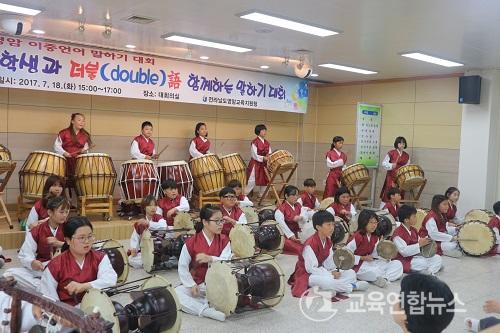 ¹®È¡¤¿¹¼úµ¿¾Æ¸®(´ÞÂ÷¿À¸§)´Â ¿µ¾ÏÃÊ ¿Ü 3°³±³ ´Ù¹®ÈÇлý°ú ÀϹÝÇлý ȸ¿ø 30 ¸íÀ¸·Î ±¸¼ºµÇ¾î ¿ÃÇØ·Î 3³â ° ¿î¿µÇϰí ÀÖ´Ù. ¶ÇÇÑ ¸Å³â 10¿ù~11 Áß¿¡ ´Ù¹®ÈÇлý ¹®È¡¤¿¹¼ú Æä½ºÆ¼¹ú¿¡¼ °ø¿¬À» Çϰí ÀÖÀ¸¸ç, Áö³ 7¿ù 18ÀÏ ¿µ¾Ï±³À°Áö¿øÃ»¿¡¼ ÁÖÃÖÇÑ ÀÌÁß¾ð¾î ¸»Çϱ⠴ëȸ¿¡¼ ½ÄÀü °ø¿¬À» ÇÏ¿© ¸¹Àº È£ÀÀÀ» À̲ø¾î ³»±âµµ ÇÏ¿´´Ù. ÇÁ·Î±×·¥Àº 4¸íÀÇ °»ç°¡ ±¹¾Ç »ç¹° ¾Ç±â·Î Çлýµé°ú Çϳª°¡ µÇ¾î ¿¬½ÀÇÔÀ¸·Î½á ¹æÇÐ µ¿¾È ¿¬ÁÖ ±â·® Çâ»ó°ú 2Çб⠰ø¿¬ Áغñ¸¦ À§ÇÑ ³»¿ëÀ¸·Î ÁøÇàÇÑ´Ù.
