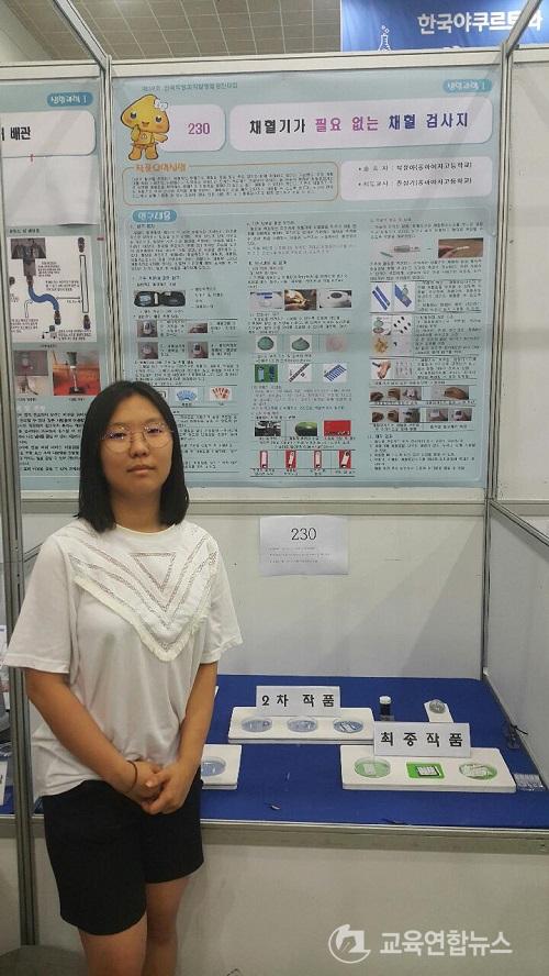 Ư»óÀ» ¹ÞÀº µ¿¾Æ¿©ÀÚ°íµîÇб³ ¹ÚÀ±¾Æ ÇлýÀº ¡°Ã¤Ç÷ÇØ °Ë»çÇÒ ¶§ º´¿ø¿¡ °¡¼ ÇØ¾ß ÇÏ´Â ºÒÆíÇÔÀ» ÇØ¼ÒÇϱâ À§ÇØ °£´ÜÇÏ°Ô ÀÏ»ó»ýȰ ¼Ó¿¡¼ äÇ÷ÇÏ´Â ¹æ¹ýÀÌ ¾øÀ»±î °í¹ÎÇÏ´Ù ¾ÆÀ̵ð¾î¸¦ ¾ò¾î ¹ß¸íǰÀ» Á¦ÀÛÇÏ°Ô µÆ´Ù¡±¸ç ¡°ÀÚ½ÅÀÇ ¹ß¸íǰÀ» ÅëÇØ ¸¹Àº »ç¶÷µéÀÌ °£´ÜÇÏ°Ô °Ë»ç¸¦ ¹ÞÀ» ¼ö ÀÖ¾úÀ¸¸é ÁÁ°Ú´Ù¡±°í ¸»Çß´Ù.