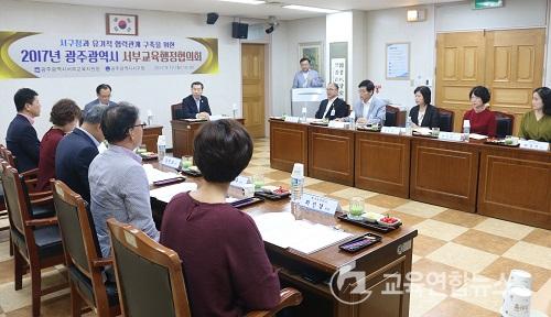 ¡¼±¤ÁÖ=±³À°¿¬ÇÕ´º½º¡½¹Ú»ó¿õ ±âÀÚ= ±¤ÁÖ±¤¿ª½Ã¼ºÎ±³À°Áö¿øÃ»(±³À°Àå ±èÈ«½Ä)°ú ±¤ÁÖ±¤¿ª½Ã¼±¸Ã»(±¸Ã»Àå ÀÓ¿ìÁø)ÀÌ 12ÀÏ ¿ÀÀü10½Ã ¼ºÎ±³À°Ã» »óȲ½Ç¿¡¼ Áö¿ª»çȸ ¹ßÀüÀ» À§ÇÑ ¡®2017³â ¼ºÎ±³À°ÇàÁ¤ÇùÀÇȸ¡¯¸¦ °³ÃÖÇß´Ù.