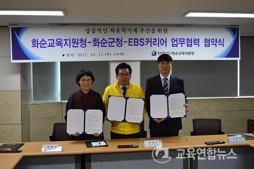 ¡¼È­¼ø=±³À°¿¬ÇÕ´º½º¡½¹Ú»ó¿õ ±âÀÚ= È­¼ø±³À°Áö¿øÃ»(±³À°Àå Á¤ÇýÀÎ)Àº 11ÀÏ(¼ö) ÀÚÀ¯ÇбâÁ¦ Áø·ÎÁ÷¾÷ üÇèÁö¿øÀ» À§ÇØ È­¼ø±ºÃ», EBS Ä¿¸®¾îÀÇ °ü°èÀÚ µî 10¿©¸íÀÌ Âü¼®ÇÑ °¡¿îµ¥ 3ÀÚ°£ MOU Çù¾àÀ» ü°áÇÏ¿´´Ù.