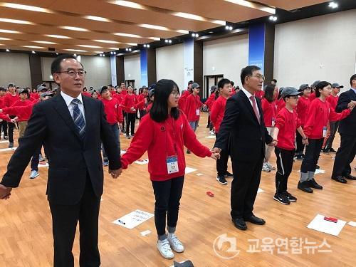 À常ä ±³À°°¨Àº Çлýµé°ú À̳¯ ÀÏÁ¤À» ÇÔ²² ÇÏ¸é¼ ¡°ÅëÀÏÀÇ ²ÞÀÌ ½ÇÇöµÇ±â¸¦ ¹Ù¶ó´Â ¿©·¯ºÐÀ̾߸»·Î ´ëÇѹα¹ÀÇ ¹ø¿µÀ» °¡Á®´Ù ÁÙ ÁøÁ¤ÇÑ ¸®´õ¡±¶ó¸é¼ Çлýµé°ú ÀÏÀÏÀÌ ¾Ç¼ö¸¦ °Ç³×¸ç °Ý·ÁÇß´Ù.
