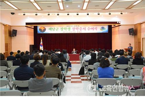 ¡¼Çس²=±³À°¿¬ÇÕ´º½º¡½¾çº´¼ö±âÀÚ= ÇØ³²°ø¾÷°íµîÇб³(±³Àå ±è»óÈ£, ÀÌÇÏ ÇØ³²°ø°í) ±â´É¿µÀç¹Ý 11¸íÀº 24ÀÏ(È) ÇØ³²±ºÃ» ¡®±â´É¿µÀç ÀåÇлý¡¯À¸·Î ¼±¹ßµÇ¾î 1Àδç 100¸¸¿øÀÇ ÀåÇбݰú ÀåÇÐÁõ¼¸¦ ¼ö¿©¹Þ¾Ò´Ù.