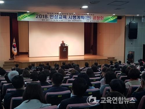 Àμº±³À°¿¡ ´ëÇÑ ±³À°°øµ¿Ã¼ÀÇ Àǰ߼ö·ÅÀ» À§ÇØ ¿¸° À̹ø °øÃ»È¸´Â 2018Çг⵵ Àμº±³À° ½ÃÇà°èȹ¾È ¾È³», ÁöÁ¤Åä·Ð, Á¾ÇÕÅä·Ð ¹× ÁúÀÇÀÀ´ä ¼øÀ¸·Î ÁøÇàµÆ´Ù.