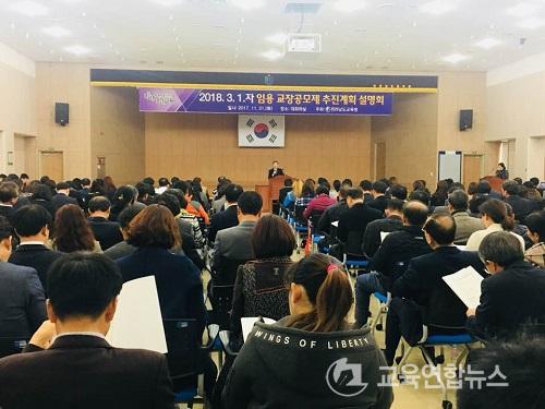 ¡¼¹«¾È=±³À°¿¬ÇÕ´º½º¡½¹Ú»ó¿õ ±âÀÚ=Àü³²µµ±³À°Ã»(±³À°°¨ À常ä)Àº 21ÀÏ º»Ã» ´ëȸÀǽǿ¡¼ 2018. 3. 1.ÀÚ ÀÓ¿ë ±³Àå°ø¸ðÁ¦ ÁöÁ¤ ´ë»ó 85°³±³ °ü°èÀÚ 280¿©¸íÀÌ Âü¼®ÇÑ °¡¿îµ¥ ±³Àå°ø¸ðÁ¦ ÃßÁø°èȹ ¼³¸íȸ¸¦ °¡Á³´Ù.