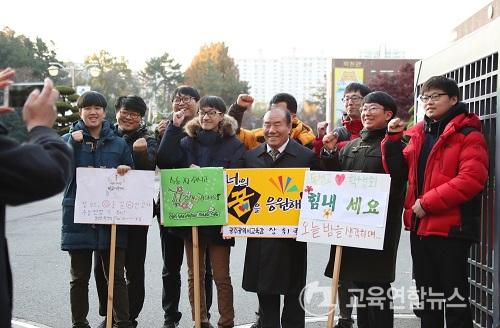 ¶Ç, Àå±³À°°¨Àº ¼öÇè»ý ÇÑ ¸í ÇÑ ¸íÀ» µû¶æÇÏ°Ô ¼ÕÀ» Àâ¾ÆÁÖ¸ç '±äÀåÇÏÁö ¸»°í Æò¼Ò󷳸¸ ÇÏÀÚ'°í °Ý·ÁÇß´Ù. µ¿¼º°í ÇлýµéÀÌ '¼ö´É Àß º¸½Ã°í ²É±æ¸¸ °ÉÀ¸¼¼¿ä', '¸¸Á¡ ±â¿ø! Âï¾îµµ Á¤´ä!', 'Àç¼ö¾øÀÌ ´ëÇа¡ÀÚ', 'Àß º¸°í ²É±æ¸¸ °ÈÀÚ', 'Èû³»¼¼¿ä ¿À´Ã ¹ãÀ» »ý°¢Çϸç' µî ÀÀ¿ø ÇÇÄÏÀ» µé°í ¼±¹èµéÀ» ÀÀ¿øÇß´Ù.