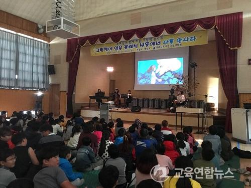 À̹ø ±×¸²Ã¥ À½¾Çȸ´Â Ã¥°ú Ŭ·¡½Ä À½¾ÇÀÌ ¾î¿ì·¯Áø ÀÌ»ö °ø¿¬À¸·Î, ÀÛÀºÇб³µé·Î ÀÌ·ç¾îÁø Çùµ¿Çб³±º 3°³±³(¿¹´çÃÊ, Á¶¼ºÃÊ, Á¶¼º³²ÃÊ) Çлýµé¿¡°Ô ¹®È ¿¹¼úüÇè ±âȸ¸¦ Á¦°øÇÏ¿© Ã¥ Àд ¹®È Á¶¼º ¹× ¿¹¼úÀû °¨¼ö¼ºÀ» ÁõÁøÇϱâ À§ÇØ ¸¶·ÃµÇ¾ú´Ù.