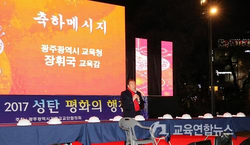 ¡¼±¤ÁÖ=±³À°¿¬ÇÕ´º½º¡½¹Ú»ó¿õ ±âÀÚ= ÀåÈÖ±¹ ±¤Áֽñ³À°°¨ÀÌ 2ÀÏ ¿ÀÈÄ6½Ã ±¹¸³¾Æ½Ã¾Æ¹®È­Àü´ç ¾Õ 5¡¤18¹ÎÁÖ±¤Àå¿¡¼­ ¿­¸° '2017 ºû°íÀ» ¼ºÅº¹®È­ÃàÁ¦ ¼ºÅºÆ®¸® Á¡È­½Ä'¿¡ Âü¼®ÇØ ÃàÇϸ޽ÃÁö¸¦ ÀüÇÑ µÚ À±ÀåÇö ±¤ÁÖ±¤¿ª½ÃÀå, ÀÌÀº¹æ ±¤ÁÖ½ÃÀÇȸ ÀÇÀå, ±è¼º¿ø ±¤Áֽñ⵶±³±³´ÜÇùÀÇȸ ´ëÇ¥¸ñ»ç µî ³»ºóµé°ú Á¡È­½ÄÀ» ÁøÇàÇß´Ù.