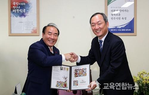 ÀåÈÖ±¹ ±¤Áֽñ³À°°¨Àº À̳¯ ¿ÀÀü11½Ã ½Ã±³À°Ã»À» ¹æ¹®ÇÑ ´ëÇѰáÇÙÇùȸ ±¤ÁÖ¡¤Àü³²ÁöºÎ ¹Î¿µµ· ÁöȸÀå°ú Å©¸®½º¸¶½º ¾Á°ú ¼º±ÝÀ» »óÈ£ ÁõÁ¤Çß´Ù.