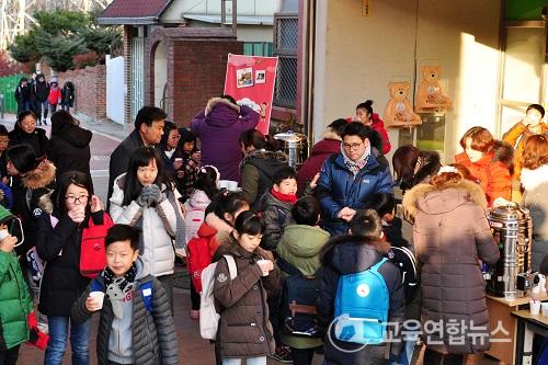À¯³È÷ Ãß¿ü´ø ¾ÆÄ§ µî±·±æ¿¡ µû¶æÇÑ Â÷¸¦ °Ç³×¹ÞÀº ÇлýµéÀº ¹àÀº ¿ôÀ½À¸·Î ´äÇß´Ù. ¾ÆÄ§ ÀÏÂïºÎÅÍ Çб³¿¡ ³ª¿Í Â÷ ³ª´® Çà»ç¸¦ ÁغñÇß´ø Çкθðµéµµ Â÷ ÇÑ ÀÜÀ» ¹Þ¾Æµç ÇлýµéÀÇ ÇູÇÑ ¸ð½À¿¡ ÇÔ²² Áñ°Å¿öÇß´Ù.