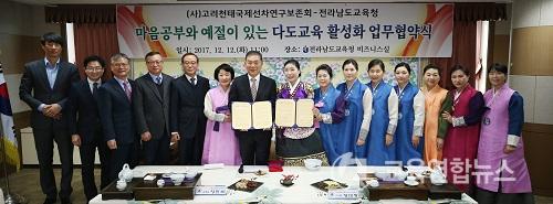 ¡¼¹«¾È=±³À°¿¬ÇÕ´º½º¡½¹Ú»ó¿õ ±âÀÚ= Àü³²µµ±³À°Ã»(±³À°°¨ À常ä)Àº 12ÀÏ º»Ã» ºñÁî´Ï½º½Ç¿¡¼ µµ±³À°Ã», (»ç)°í·Áõű¹Á¦¼±Â÷¿¬±¸º¸Á¸È¸ °ü°èÀÚ µîÀÌ Âü¼®ÇÑ °¡¿îµ¥ ´Ùµµ±³À° Ȱ¼ºÈ¸¦ À§ÇÑ ¾÷¹«Çù¾àÀ» ü°áÇß´Ù.