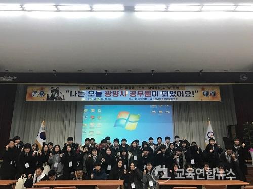 ¡¼±¤¾ç=±³À°¿¬ÇÕ´º½º¡½¹Ú»ó¿õ ±âÀÚ= Àü¶ó³²µµ±¤¾ç±³À°Áö¿øÃ»(±³À°Àå ÀÓ¿øÀç)Àº 19ÀÏ ±¤¾ç½Ãû¿¡¼ ÇàÁ¤Á÷ °ø¹«¿øÀ» ²Þ²Ù´Â ÁßÇб³ 3Çгâ Çлý ¹× ½Ãû °ü°èÀÚ, ±³»ç, Áø·ÎÄÚÄ¡, ´ã´çÀåÇÐ»ç µî 70¿©¸íÀÌ Âü¼®ÇÑ °¡¿îµ¥ ¡¸ÁßÇлý Áø·Î․Á÷¾÷üÇèÀÇ ³¯¡¹À» ½Ç½ÃÇß´Ù.