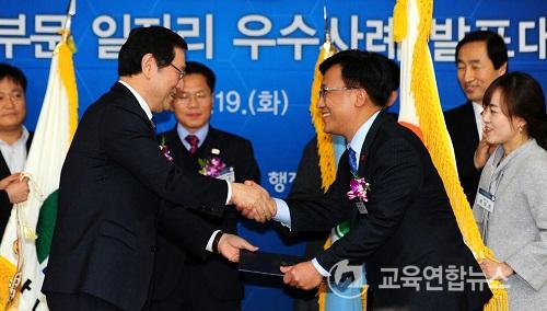 ´ëÅë·É Á÷¼Ó ÀÏÀÚ¸®À§¿øÈ¸¿Í ÇàÁ¤¾ÈÀüºÎ°¡ 19ÀÏ ¿ÀÈÄ Á¤ºÎ ¼¿ïû»ç º°°ü 3Ãþ¿¡¼ °øµ¿ °³ÃÖÇÑ ¡®Áö¹æ°ø°øºÎºÐ ÀÏÀÚ¸® ¿ì¼ö»ç·Ê ¹ßÇ¥´ëȸ¡¯¿¡¼ ±¤ÁÖ½ÃÀÇ ¡®Ã»³âµå¸²»ç¾÷¡¯ÀÌ ´ë»óÀ¸·Î ¼±Á¤µÅ ´ëÅë·É»óÀ» ¹Þ¾Ò´Ù.