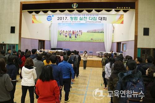 Á¤ÇýÀÎ ±³À°ÀåÀº ¡°¿À´Ã û·Å ½Çõ ´ÙÁü ´ëȸ¸¦ ÅëÇØ û·ÅÇϰí ÇູÇÑ Àü³²±³À° ½ÇÇöÀ» À§ÇÑ Ã»·Å ½ÇõÀÇÁö¸¦ °ß°íÈ÷ ÇÏ´Â °è±â°¡ µÇ°í, Á÷¿ø °£ÀÇ ¼ÒÅë°ú ÈÇÕÀ» ÅëÇØ ½Å¸í³ª°í Ȱ±âÂù Á÷Àå ºÐÀ§±â¸¦ Á¶¼ºÇÏ´Â ÀÚ¸®°¡ µÇ¾úÀ¸¸é ÇÑ´Ù.¡± ¶ó°í ¸»Çß´Ù.