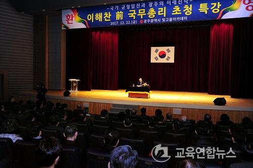 ¡¼±¤ÁÖ=±³À°¿¬ÇÕ´º½º¡½¹Ú»ó¿õ ±âÀÚ= ¡°Áö¿ªÀÇ ¹Ì·¡ Ȱ·Î ¸ð»öÀ» À§Çؼ´Â »çȸÀû ´ëŸÇùÀ» ÅëÇÑ »ó»ý °øÁ¸ÀÇ °úÁ¤À» ¸¸µå´Â °ÍÀÌ Áß¿äÇÕ´Ï´Ù.¡± ÀÌÇØÂù Àü ±¹¹«ÃѸ®´Â 22ÀÏ ¿ÀÈÄ ±¤ÁÖ±¤¿ª½Ãû ´ëȸÀǽǿ¡¼ ¿¸° Á¦73ȸ ºû°íÀ»¾ÆÄ«µ¥¹Ì Ư°¿¡¼ À̰°ÀÌ ÁÖÀåÇß´Ù.