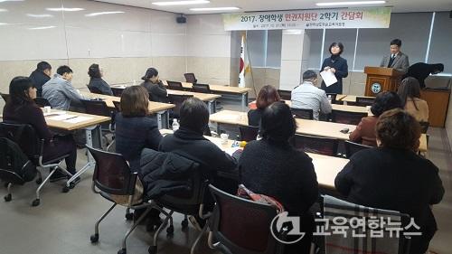 ¡®2017. Àå¾ÖÇлý ÀαÇÁö¿ø´Ü 2Çб⠰£´ãȸ¡¯´Â Àå¾ÖÇлý ÀαÇÁö¿ø´Ü À§¿ø ¹× °ü³» À¾¡¤¸é»ç¹«¼Ò »çȸº¹Áö ¾÷¹« ´ã´çÀÚ 30¿©¸íÀ» ´ë»óÀ¸·Î Àå¾ÖÇлý ÀαÇÁö¿ø´ÜÀÇ 2Çбâ Á¤±â ÇöÀåÁö¿ø °á°úº¸°í¿Í Ư¼ö±³À°´ë»óÇлýÀÇ ÀαǺ¸È£¸¦ À§ÇÑ ÀÇ°ß ¼ö·ÅÀ» ¸ñÀûÀ¸·Î ½Ç½ÃµÇ¾ú´Ù.