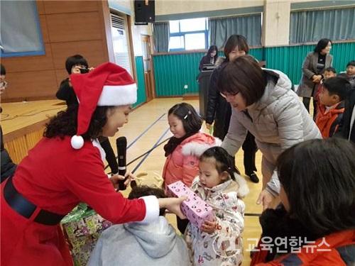 2ºÎ°¡ ½ÃÀÛµÇÀÚ ½Å³ª´Â ÄɷѼÛÀÌ ¿ï·ÁÆÛÁö°í ¾ÆÀ̵éÀº ³Ê³ª ÇÒ °Í ¾øÀÌ ¹Ú¼ö¸¦ Ä¡¸ç ³ë·¡¸¦ ºÒ·¶´Ù. Å©¸®½º¸¶½º ¼±¹°²Ù·¯¹Ì¸¦ °¡µæ ½ÇÀº ½ä¸Å°¡ °´ç ¾ÈÀ¸·Î µé¾î¿À¸é¼ ÇлýµéÀÇ ÇູÇÑ È¯È£¼ºÀÌ °´ç ¾ÈÀ» °¡µæ ä¿ü´Ù. ÀÌÈÁø ±³ÀåÀº Á÷Á¢ »êŸ º¹ÀåÀ» ÇÏ°í ¾ÆÀ̵éÀÇ ¼ÕÀ» ÀÏÀÏÀÌ Àâ¾ÆÁÖ¸ç ÇູÀÇ ¸Þ½ÃÁö¸¦ ÀüÇϸç Çб޺°·Î ¼±¹°À» ³ª´² ÁÖ¾ú´Ù. Å©¸®½º¸¶½º ¼±¹°Àº »çÀü¿¡ Çлý °³°³ÀÎÀÌ ¹Þ°í ½ÍÀº ¼±¹° ¸ñ·ÏÀ» ¹Þ¾Æ ¸ðµÎ°¡ °®°í ½ÍÀº ¼±¹°À» ¹ÞÀ» ¼ö ÀÖµµ·Ï ÇÏ¿´´Ù.