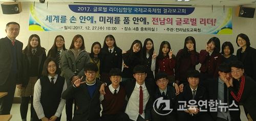 ¡¼¹«¾È=±³À°¿¬ÇÕ´º½º¡½¹Ú»ó¿õ ±âÀÚ= Àü³²µµ±³À°Ã»(±³À°°¨ À常ä)Àº Áö³ 11¿ù 9ÀϺÎÅÍ 18ÀϱîÁö(10Àϰ£) ±¹Á¦±³À° üÇè¿¡ Âü°¡ÇÑ °íµîÇлý 20¸íÀ» ´ë»óÀ¸·Î 27ÀÏ ¡®Ã»¼Ò³â ±Û·Î¹ú ¸®´õ½Ê ÇÔ¾ç ±¹Á¦±³À° üÇè °á°ú º¸°íȸ¡¯¸¦ °¡Á³´Ù.