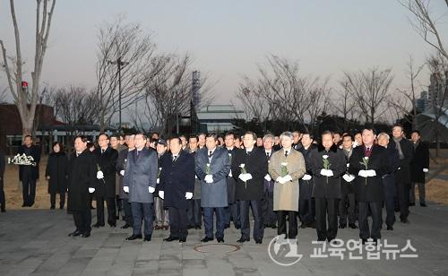 Âü¿©ÀÚµéÀº »ó¹«°ø¿ø ³» ±¤ÁÖµ¶¸³¿îµ¿±â³äްú ±¤ÁÖ°ø¿ø ÇöÃæÅ¾, 4¡¤19Èñ»ýÀÚ¿µ·ÉÃ߸ðºñ, ±¤ÁÖÇлýµ¶¸³¿îµ¿±â³äž, ±¹¸³5¡¤18¹ÎÁÖ¹¦Áö, ¸Á¿ùµ¿5¡¤18±¸¹¦¿ªÀ» ÀÕ´Þ¾Æ ¹æ¹®ÇØ ¼ø±¹¼±¿­°ú ¾Ö±¹Áö»ç¸¦ ±â¸®¸ç ÇåÈ­¡¤ºÐÇâÇß´Ù.