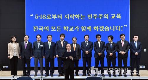 ÇÑÆí, 14¸í(´ë±¸,Àü³²,ÀÎõ ºÒÂü)ÀÇ ±³À°°¨µéÀÌ ÇÔ²²ÇÑ À̹ø ÃÑȸ¿¡¼ ¡®5¡¤18¹ÎÁÖȿ ±³À° Àü±¹È¡¯ °øµ¿ ¼±¾ð¹®À» äÅÃÇÏ¿´´Ù.