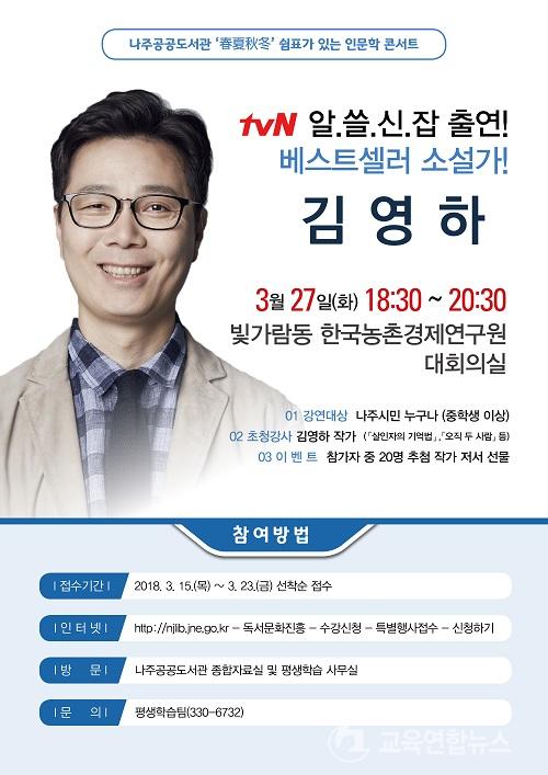 ³ªÁÖ°ø°øµµ¼°ü, 3¿ù 27ÀÏ ¼Ò¼³°¡ ±è¿µÇÏ ÃÊû Àι®ÇÐ °¿¬È¸ °³ÃÖ ¼Ò¼³°¡°¡ µé·ÁÁÖ´Â µ¶¼ÀÇ ±«·Î¿ò¿Í Áñ°Å¿ò |