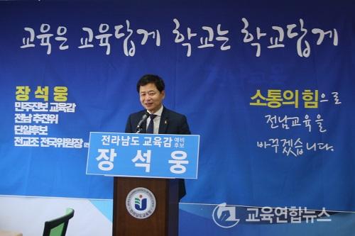 ¡¼±¤ÁÖ=±³À°¿¬ÇÕ´º½º¡½¹Ú»ó¿õ ±âÀÚ = Àå¼®¿õ Àü³²µµ±³À°°¨ ¿¹ºñÈ帴 3ÀÏ ¡°ÇлýÀÚÄ¡, ÇлýÁ¸Áß, Àü³²±³À°¸¸µé±â¡± 5´ë Á¤Ã¥°ø¾àÀ» ¹ßÇ¥Çß´Ù.