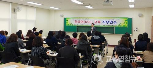 Çѱ¹¾î(KSL)±³À° Á÷¹«¿¬¼ö´Â ÁßµµÀÔ±¹ ¹× ¿Ü±¹ÀÎÇлý µî Çѱ¹¾î°¡ ¼Å÷ ÇлýµéÀ» ´ë»óÀ¸·Î Á¦2¾ð¾î·Î¼ÀÇ Çѱ¹¾î¸¦ ±³À°ÇÏ´Â ¡®Çѱ¹¾î(KSL)±³À°°úÁ¤¿¡ ´ëÇÑ ÀÌÇØ, Çѱ¹¾î±³À° ¹æ¹ý·Ð, Çѱ¹¾î±³À° Æò°¡, Çѱ¹¾î±³À° ¿î¿µÀÇ ½ÇÁ¦¡¯ µîÀ¸·Î ±¸¼ºµÈ ¿¬¼ö´Ù. ±¤ÁÖ Áö¿ª¿¡¼± ¿ÃÇØ óÀ½ ½Ç½ÃµÆ´Ù.