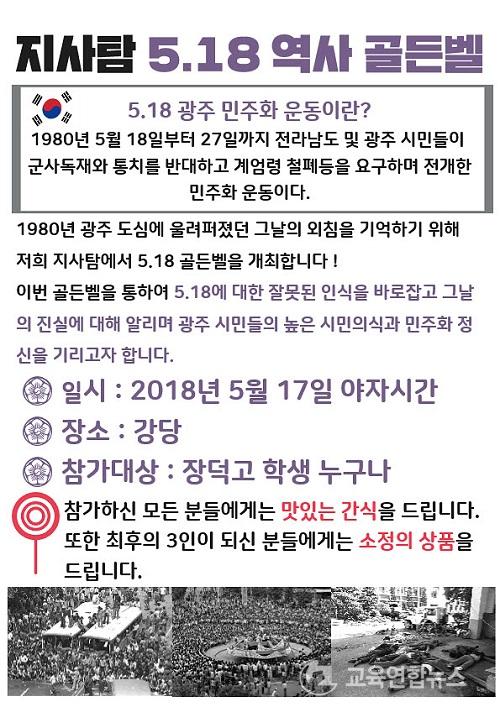 Àå´ö°í, 5¡¤18 °ñµçº§ ÄûÁî¿Í űر⠳ª´® Ä·ÆäÀÎ ÁøÇà ¹ÎÁÖȿ ±â³ä ÀÌ»ö Çà»ç ¸¶·Ã |
