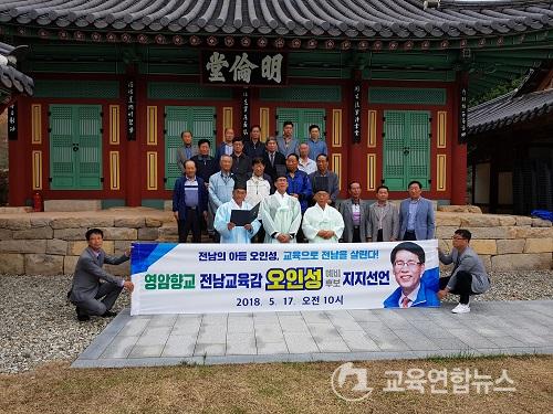 ¿µ¾ÏÇâ±³ ÁýÇàºÎ¿Í ¿ÀÀμº Èĺ¸(ùÁÙ ¿ÞÂÊ¿¡¼­ µÎ¹øÂ°)°¡ 17ÀÏ ¿ÀÀü Àü³² ¿µ¾Ï±º ¿µ¾ÏÀ¾ ±³µ¿¸® ¿µ¾ÏÇâ±³(Àü±³ ±èÄ¡¼º¡¤Ã¹ÁÙ ¿ÞÂÊ¿¡¼­ ù¹øÂ°) ´ë¼ºÀü¿¡¼­ ¿ÀÀμº Èĺ¸ ÁöÁö¸¦ ¼±¾ðÇÑ µÚ ±â³äÃÔ¿ëÀ» Çϰí ÀÖ´Ù.