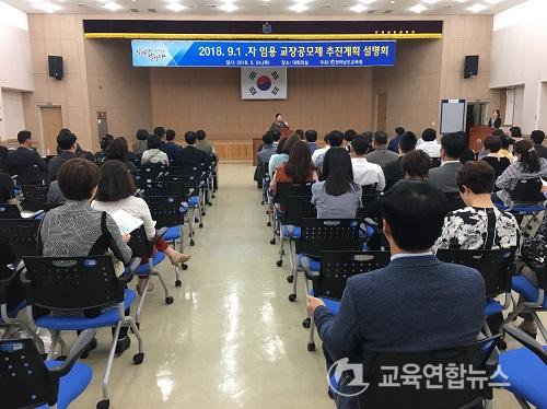 Àü³²µµ±³À°Ã»(±³À°°¨ ±ÇÇÑ´ëÇà ºÎ±³À°°¨ À̱âºÀ)Àº 24ÀÏ º»Ã» ´ëȸÀǽǿ¡¼ 2018. 9. 1.ÀÚ ÀÓ¿ë ±³Àå°ø¸ðÁ¦ ÁöÁ¤ ´ë»óÇб³ °ü°èÀÚ°¡ Âü¼®ÇÑ °¡¿îµ¥ ¼³¸íȸ¸¦ °¡Á³´Ù.