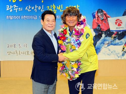 ¡¼±¤ÁÖ=±³À°¿¬ÇÕ´º½º¡½¹Ú»ó¿õ ±âÀÚ= ¿ ¼Õ°¡¶ôÀÌ ¾ø´Â Àå¾Ö¸¦ µó°í ¼¼°è Á¦10À§ÀÇ °íºÀ ¾È³ªÇª¸£³ª(8,091m) µîÁ¤¿¡ ¼º°øÇÑ ±èÈ«ºó ´ëÀåÀ» ÃàÇÏÇϴ ȯ¿µ½ÄÀÌ 25ÀÏ ¿ÀÈÄ 4½Ã30ºÐ ±¤ÁÖ±¤¿ª½Ãû 3Ãþ ºñÁî´Ï½º·ë¿¡¼ ¿·È´Ù.