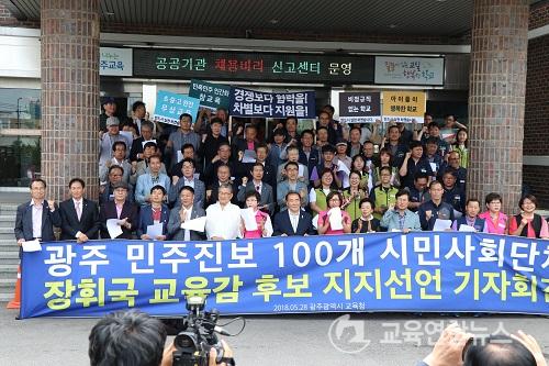 ¡¼±¤ÁÖ=±³À°¿¬ÇÕ´º½º¡½¹Ú»ó¿õ ±âÀÚ= ±¤ÁÖÁö¿ª 103°³ ¹ÎÁÖÁøº¸½Ã¹Î»çȸ´Üü°¡ ÀåÈÖ±¹ ±¤Áֽñ³À°°¨ Èĺ¸ ÁöÁö¸¦ ¼±¾ðÇß´Ù.