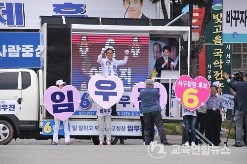¡¼±¤ÁÖ=±³À°¿¬ÇÕ´º½º¡½¹Ú»ó¿õ ±âÀÚ= ¹«¼Ò¼Ó ÀÓ¿ìÁø ¼±¸Ã»Àå È帴 °ø½Ä¼±°Å¿îµ¿ ù³¯ÀÎ 31ÀÏ ¿ÀÈÄ 2½Ã ¼±¸ ±ÝÈ£µ¿ ºû°íÀ» ±¹¾ÇÀü½Ã°ü ¾Õ »ç°Å¸®¿¡¼ 6.13 ¼±°Å ÃâÁ¤½ÄÀ» °®°í º»°Ý ¼±°Å¿îµ¿¿¡ µ¹ÀÔÇß´Ù.