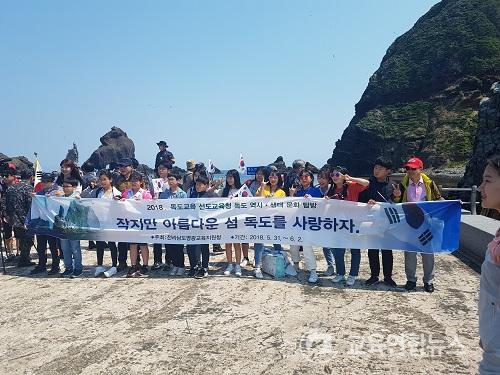 ±èÁؼ® ±³À°ÀåÀº ¡° À̹ø µ¶µµ ¿ª»ç․»ýŠ޹æÀº ¿ì¸® Çлýµé¿¡°Ô´Â µ¶µµ¿¡ ´ëÇØ ±íÀÌÀÖ°Ô ¾Ë¾Æ°¡´Â ¼ÒÁßÇÑ °æÇèÀÌ µÉ °ÍÀ̸ç, µ¶µµ°¡ ¿ª»çÀûÀ¸·Îµµ ¿ì¸®¶¥ÀÓÀ» ¾Ë°í µ¶µµ¿¡ °ü½É°ú »ç¶ûÇÏ´Â ¸¶À½Àº ÇÑÃþ ³ô¾ÆÁú °ÍÀÌ´Ù. 2018. µ¶µµ¼±µµ±³À°Ã»À¸·Î¼ ÇлýµéÀÇ µ¶µµ¿¡ ´ëÇÑ °ü½É»Ó¸¸ ¾Æ´Ï¶ó ¾Ö±¹½ÉÀ» ³ôÀ̱â À§ÇØ ´Ù¾çÇÑ ¹æ¹ýÀ» ÅëÇØ Áö¿øÀ» ÇÒ »ý°¢ÀÌ´Ù.¡±¶ó°í ÇÏ¿´´Ù.