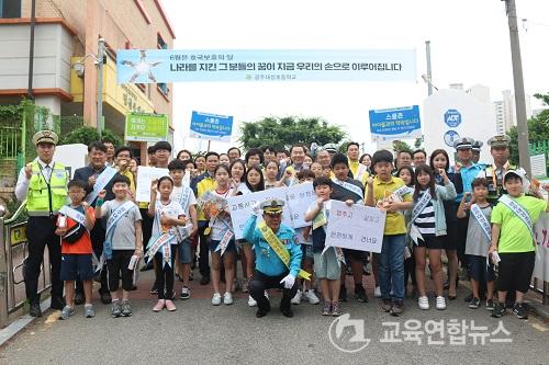 ¡¼±¤ÁÖ=±³À°¿¬ÇÕ´º½º¡½¹Ú»ó¿õ ±âÀÚ= ±¤ÁÖ±¤¿ª½Ã¼ºÎ±³À°Áö¿øÃ»(±³À°Àå ±èÈ«½Ä)ÀÌ 1Çбâ 3¹øÂ° ±³ÅëÄ·ÆäÀÎÀ» 6¿ù5ÀÏ ¿ÀÀü 8½ÃºÎÅÍ ¾à 1½Ã°£¿©¿¡ °ÉÃÄ ±¤Áִ뼺ÃʵîÇб³ Á¤¹® ¾Õ µµ·Î¿¡¼ ¡®¾î¸°ÀÌ º¸È£±¸¿ª(½ºÄðÁ¸) ±³ÅëÄ·ÆäÀΡ¯À» ½Ç½ÃÇß´Ù.