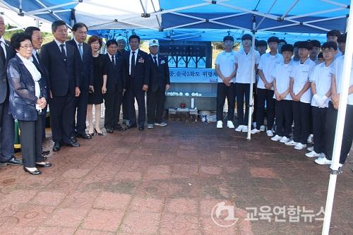 Ãßµµ»ç¿¡¼­ ¹Ú¿À¼ø ±³ÀåÀº ¡°ÇöÃæÀÏÀº ´Ü¼øÇÑ °øÈÞÀÏÀÌ ¾Æ´Ï¶ó ³ª¶ó¸¦ À§ÇØ Èñ»ýÇϽŠºÐµéÀÇ ³ÌÀ» ±â¸®´Â Ã߸ðÀÇ ³¯À̸ç, ¸ðµÎ °æ°ÇÇÑ ¸¶À½À¸·Î ¼ø±¹¼±¿­°ú È£±¹ ¿µ·Éµé¿¡°Ô ¹¬³äÀ» ¿Ã¸®ÀÚ.¡±¶ó¸ç Çà»çÀÇ Àǹ̸¦ ´õ¿í °­Á¶Çß´Ù.