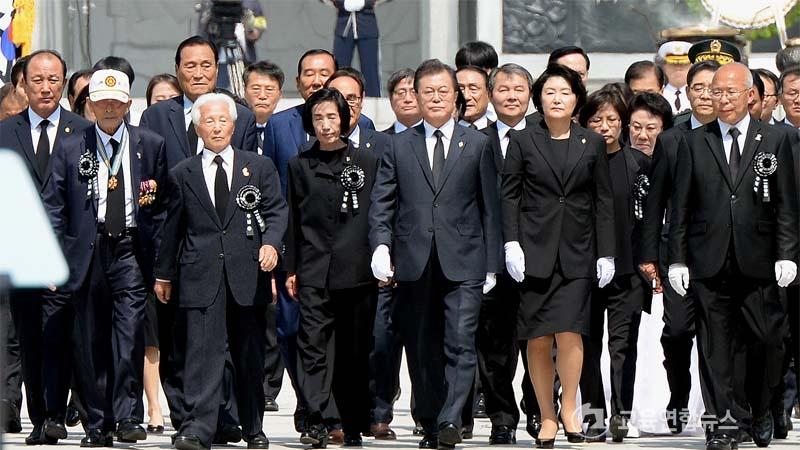 À̳¯ ¹®ÀçÀÎ ´ëÅë·ÉÀº Ãßµµ»ç¸¦ ÅëÇØ ¡°¿À´Ã ¿¹¼ø ¼¼ ¹øÂ° ÇöÃæÀÏÀ» ¸Â¾Æ, ¿ì¸®¸¦ ÁöŰ°í ³ª¶ó¸¦ À§ÇØ Èñ»ýÇÑ ¿µ·ÉµéÀÌ ¸ðµÎ ¿ì¸®ÀÇ ÀÌ¿ôÀ̾ú°í °¡Á·À̾ú´Ù´Â »ç½ÇÀ» »õ»ï ±ú´Ý½À´Ï´Ù. ±¹¹Î°ú ±¹°¡¸¦ À§ÇØ Çå½ÅÇÑ ±¹°¡À¯°øÀÚ ¿©·¯ºÐ²² ±íÀº Á¸°æÀÇ ¸¶À½À» Ç¥Çϸç, À¯°¡Á·²² ¾ÖƶÇÑ ¾ÖµµÀÇ ¸»¾¸À» µå¸°´Ù¡±°í ¸»Çß´Ù.