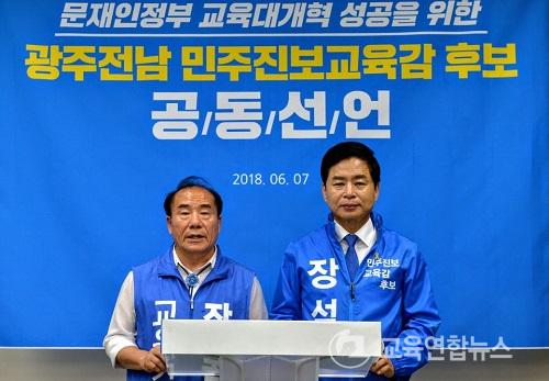 ÀåÈÖ±¹¡¤Àå¼®¿õ, ¡°¹®ÀçÀÎ ±³À°°³Çõ ¼º°ø, Á߽ɿ¡ ¼°Ú´Ù.¡± ±¤ÁÖ¡¤Àü³² ¹ÎÁÖÁøº¸±³À°°¨ Èĺ¸ °øµ¿¼±¾ð |