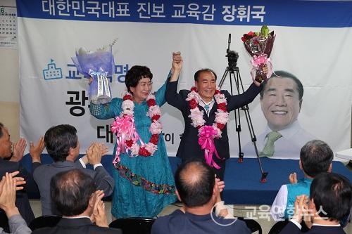 ÀåÈÖ±¹ ±¤Áֽñ³À°°¨ ´ç¼±ÀÎÀº Áøº¸Áø¿µÀÇ ÀüÆøÀûÀÎ Áö¿øÀ» ¹Þ¾ÒÀ¸¸ç, °¢Á¾ ¿©·ÐÁ¶»ç¿¡¼­ ÇöÁ÷ ±³À°°¨ ÇÁ·¹¹Ì¾öÀ¸·Î Àå È帰¡ ¼±µÎ¸¦ À¯ÁöÇßÁö¸¸ ÀÌ È帰¡ ¹Ù¦ Ãß°ÝÇÏ´Â ¾ç»óÀ» º¸À̰í ÀÖ¾úÀ¸³ª ±¤ÁÖ±³À°À» Çõ½ÅÇϰí û·Å°ú Çõ½Å±³À°, º¸ÆíÀû ±³À°º¹ÁöÀÇ ¼ÒÁßÇÑ °¡Ä¡¸¦ Áö۱â À§ÇØ ´Ù½Ã ÇÑ ¹ø ¼±ÅÃÇØ ´Þ¶ó°í ÁöÁö È£¼Ò°¡ 3¼±°¡µµ¿¡ ¼º°øÀÇ ÁÖ¿ä Çß´Ù.