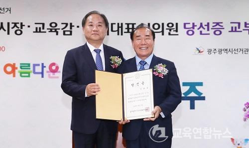 ¡¼±¤ÁÖ=±³À°¿¬ÇÕ´º½º¡½¹Ú»ó¿õ ±âÀÚ = 6¡¤13 Áö¹æ¼±°Å¿¡¼­ ´ç¼±µÈ 'Áøº¸±³À° ´ëÇ¥ÁÖÀÚ' ±¤ÁÖ±¤¿ª½Ã±³À°Ã» ÀåÈÖ±¹ ±³À°°¨ÀÌ 15ÀÏ ¿ÀÀü10½Ã ±¤ÁÖ±¤¿ª½Ã¼±°Å°ü¸®À§¿øÈ¸ ´ëȸÀǽǿ¡¼­ '±³À°°¨ ´ç¼±Áõ'À» ¼ö·ÉÇß´Ù.