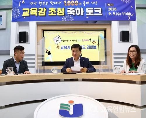 ¡¼¹«¾È=±³À°¿¬ÇÕ´º½º¡½¹Ú»ó¿õ ±âÀÚ= Àü¶ó³²µµ±³À°Ã»(±³À°°¨ Àå¼®¿õ)ÀÌ 9ÀÏ(¼ö) Àü¶ó³²µµ±³À°¿¬±¸Á¤º¸¿ø ¹Ìµð¾î½Ç¿¡¼­ ¡®Àü³² Çкθð ÇѸ¶´ç¡¯ ¹êµå 1,000¸í µ¹ÆÄ¸¦ ±â³äÇØ Àå¼®¿õ ±³À°°¨°ú Çкθð ´ëÇ¥ÀÇ ¶óÀ̺ê ÅäÅ©¸¦ ÁøÇàÇß´Ù.