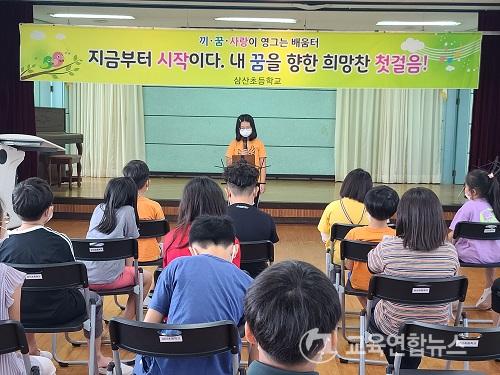 ¡¼Çس²=±³À°¿¬ÇÕ´º½º¡½ÀÌ¿µÁö±âÀÚ= »ï»êÃʵîÇб³(±³Àå ¾ÈÇýÀÚ)´Â Áö³­ 3ÀÏ¿¡ »ï»êÃʵîÇб³ ¼Û¸²°ü¿¡¼­ Àü±³»ý 39¸íÀÌ ¸ð¿© 1Çгâ, 2Çгâ, 3Çгâ, 5Çгâ 20¸íÀÇ ÇлýµéÀÌ ²Þ ³ª´® Ȱµ¿ÀÇ ÀÏȯÀ¸·Î ¡®³ªÀÇ ²Þ ¹ßÇ¥Çϱ⡯¸¦ ½Ç½ÃÇÏ¿´´Ù.
