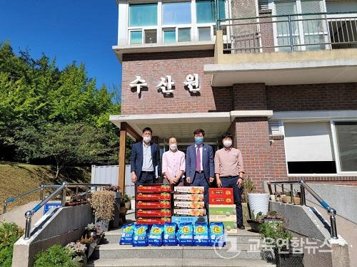 ¡¼³ªÁÖ=±³À°¿¬ÇÕ´º½º¡½¹Ú»ó¿õ ±âÀÚ= Àü¶ó³²µµ³ªÁÖ±³À°Áö¿øÃ»(±³À°Àå ±è¿µ±æ)Àº Áö³­ 25ÀÏ »ó¹Ý±â Áö¹æ±³À°ÀçÁ¤ ÁýÇà ¿ì¼ö±â°üÀ¸·Î ¼±Á¤µÇ¾î ¹ÞÀº Æ÷»ó±ÝÀ» ¶æÀÖ°Ô »ç¿ëÇÏÀÚ´Â Á÷¿øµéÀÇ ÀǰßÀ» ¹Ý¿µÇÏ¿©, Ãß¼® ¸íÀýÀ» ¸ÂÀº ³ªÁÖ Áö¿ª »çȸº¹Áö ½Ã¼³¿¡ À§¹®Ç°À» Àü´ÞÇÏ¸ç °ü°èÀڵ鿡°Ô À§·Î¿Í °Ý·ÁÇß´Ù.